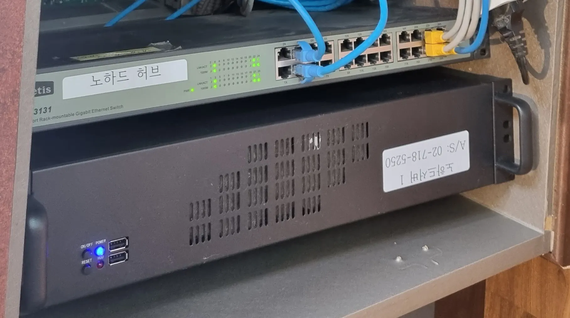노하드 서버 설치 장소가 너무 협소한 관계로 랙케이스를 이용한 공간활용을 최대한 해 드렸습니다.