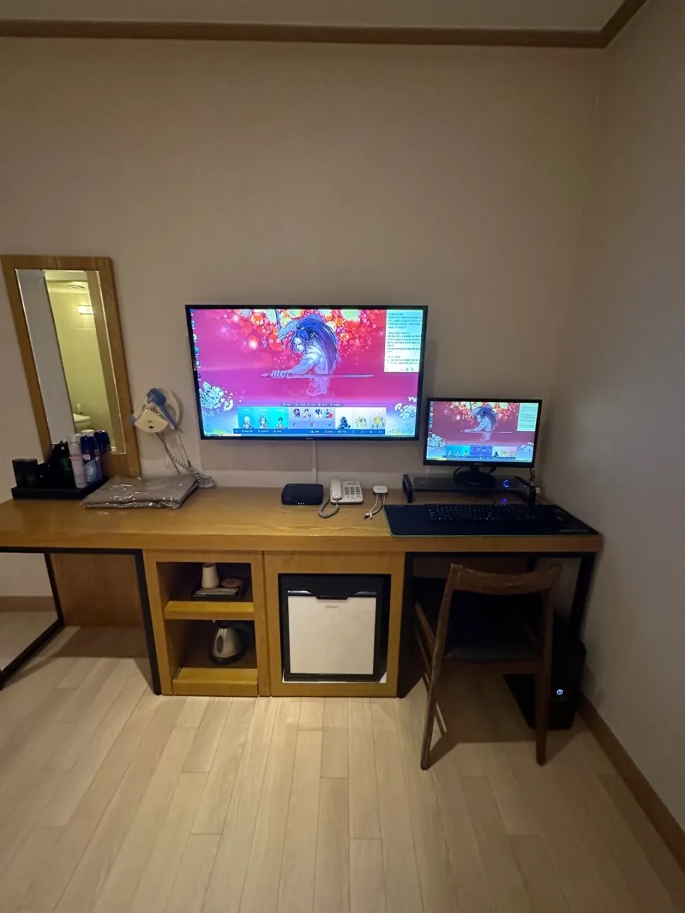 책상은 기존 제품이 너무 깔끔하게 관리가 잘 되어 있어서 재활용하여 컴퓨터와 노하드 시스템을 설치해 드렸습니다.